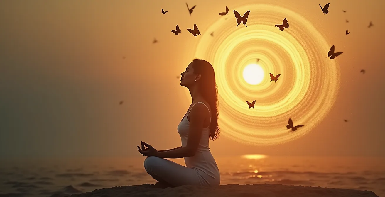 Questa pratica trasforma il respiro, un processo solitamente inconscio, in un’ancora di salvezza. Invece di essere in balia di un respiro corto e affannoso tipico dell’ansia, ne riprendete il controllo, guidandolo con il ritmo del mantra. L’immagine di onde delicate o di piume leggere mosse dal vento può aiutare a visualizzare questo flusso calmo e regolare, un’alternativa potente al tumulto interiore.